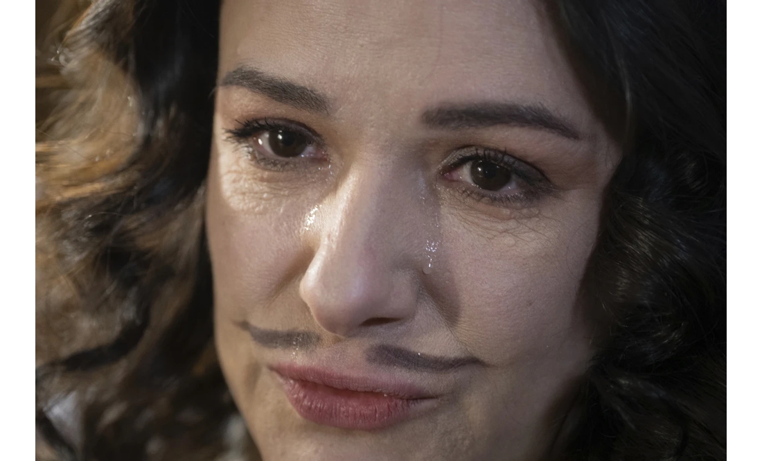 Він зауважив: вистави тут тепер незвичні. Так, 43-річна українська артистка виходить на сцену в чорній шкіряній куртці та з намальованими вусами.