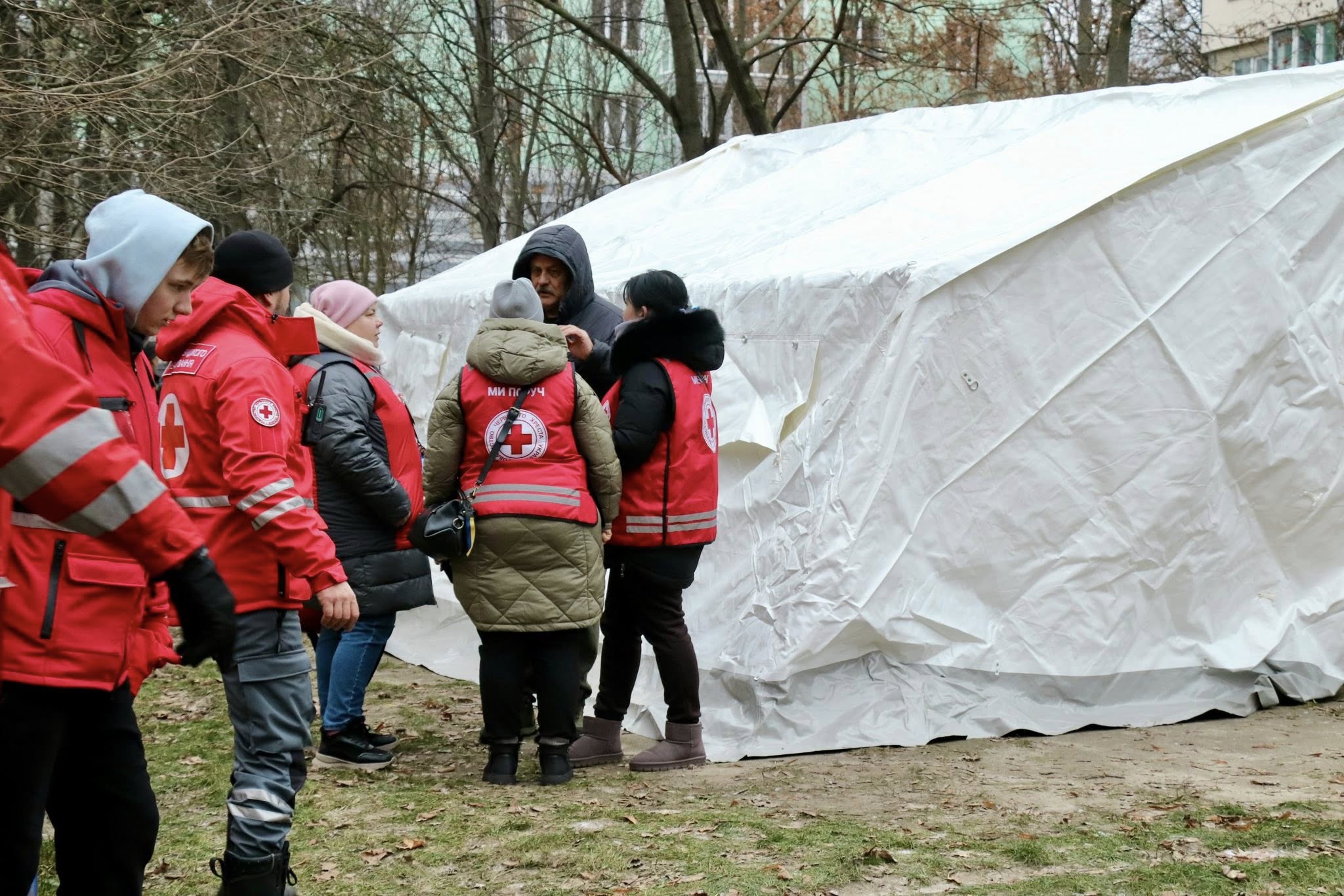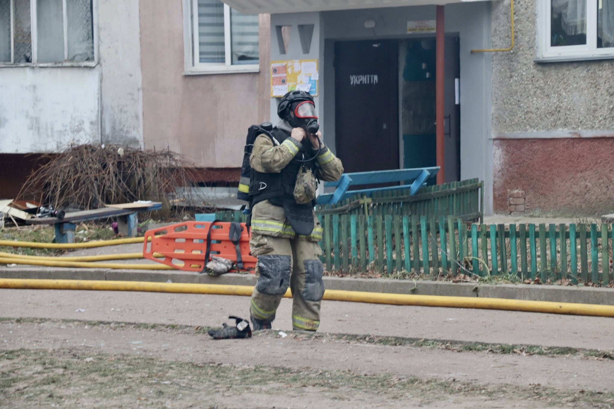 Рятувальні роботи тривають. Вогнеборці гасять пожежу. Працюють усі відповідні служби. Волонтери. На місці розгорнули пункт незламності.