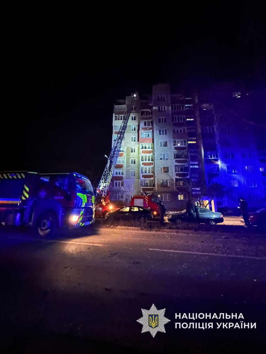 "Пошкоджено багатоповерхівку, приватні житлові будинки та припарковані поруч автівки. На місці події працюють слідчо-оперативні групи поліції, патрульні поліцейські, криміналісти, вибухотехніки, поліцейські офіцери громади, рятувальники ДСНС та всі екстрені служби.