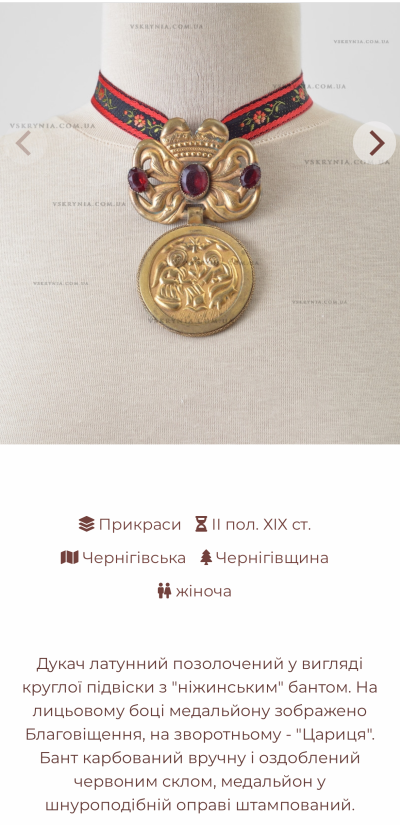 Латунний підвісок з емаллю ручної роботи у формі серця червоного кольору за 7 тис грн можна придбати на сайті бренду. В описовій частині зазначається: натхненням для форми прикраси слугував дукач-ягнусок ІІ половини ХІХ ст. з Чернігівщини.