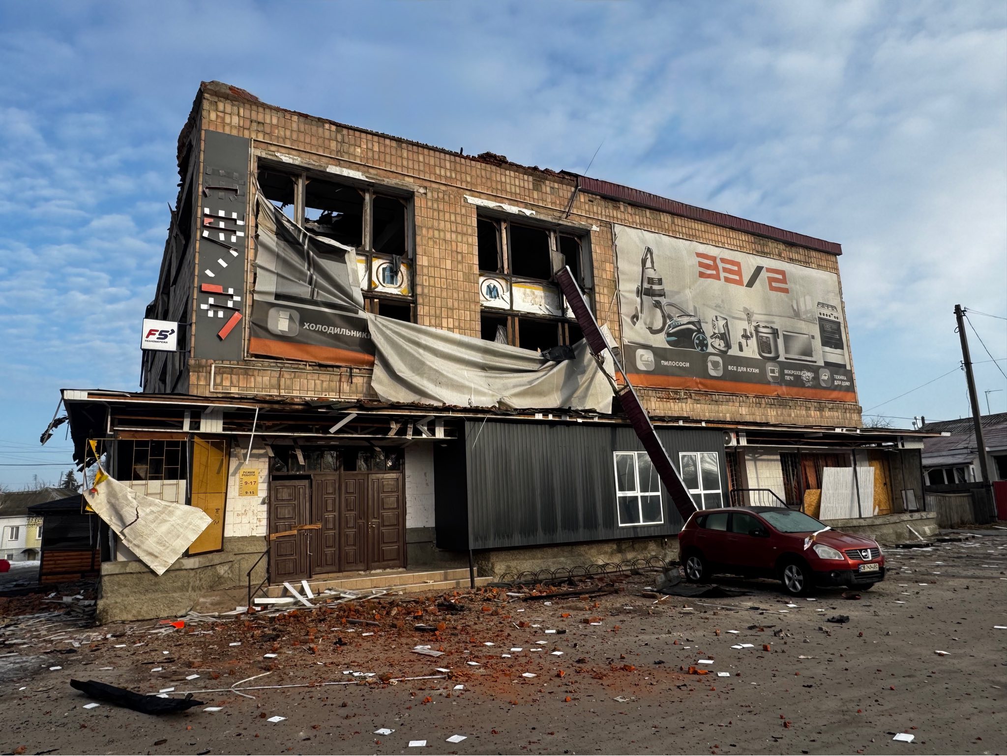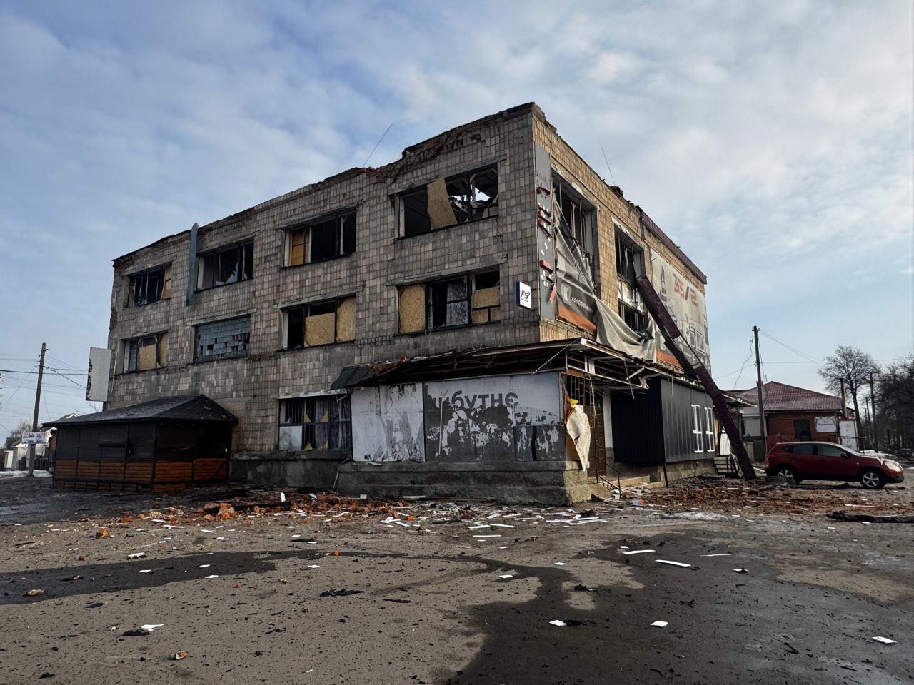"Ціллю терористів стала будівля, де розташовані місцеві магазини. Також пошкоджень зазнали прилеглі житлові будинки, комерційні та адміністративні споруди", - повідомив начальник Новгород-Сіверської РВА Олександр Селіверстов.