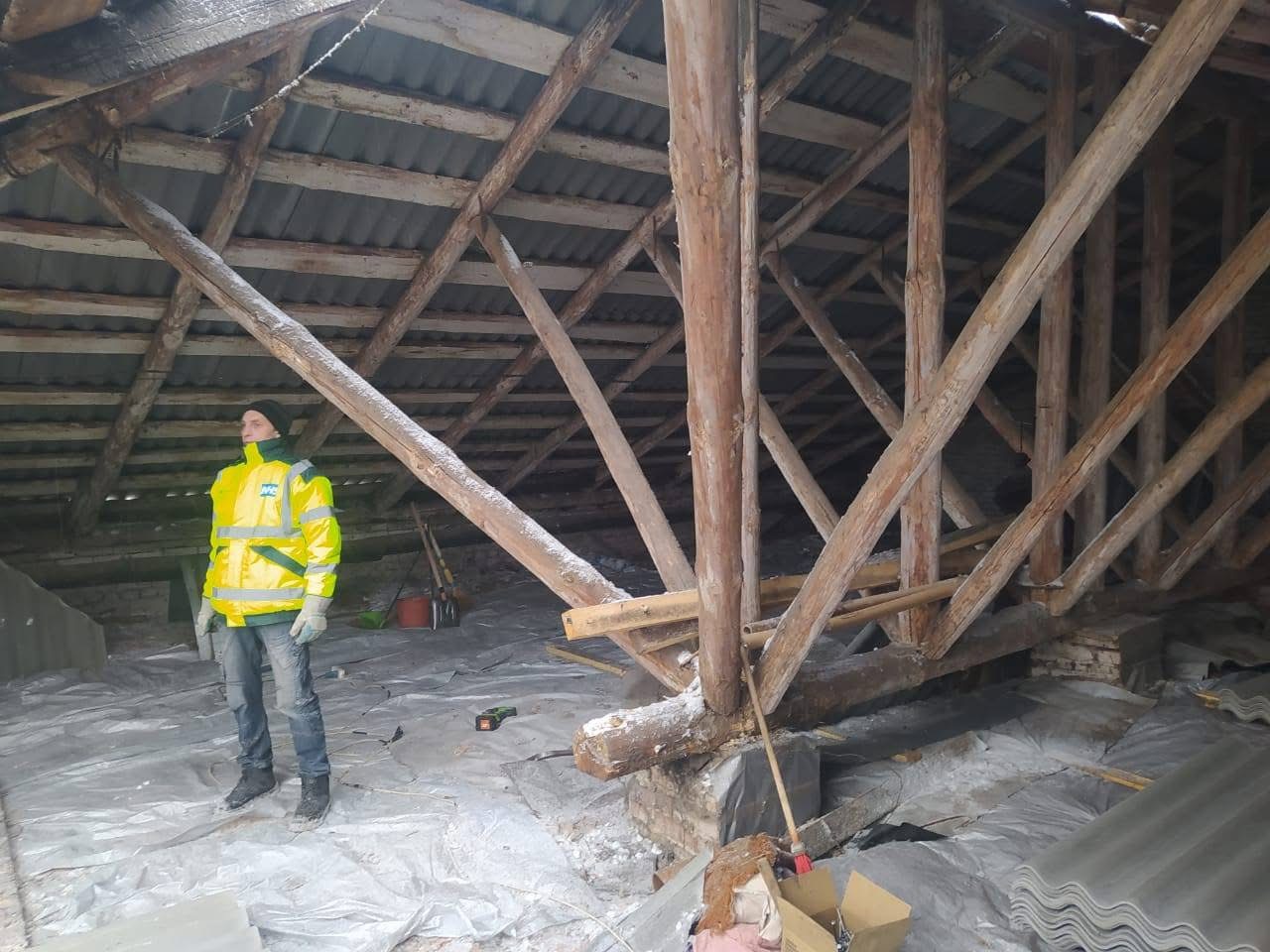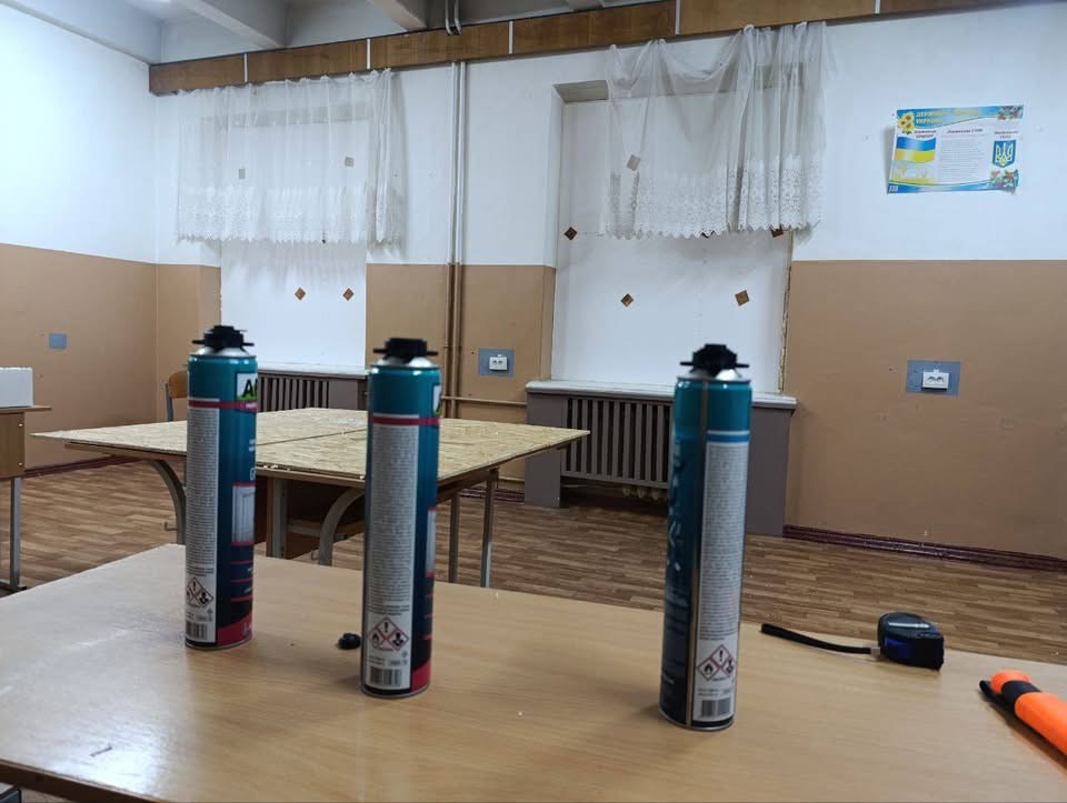 Пару тижнів потому - і у будівлі вже закриті вікна. За словами директора, це сталося завдяки управлінню освіти ОДА, яке надало будматеріали та шифер для даху.
