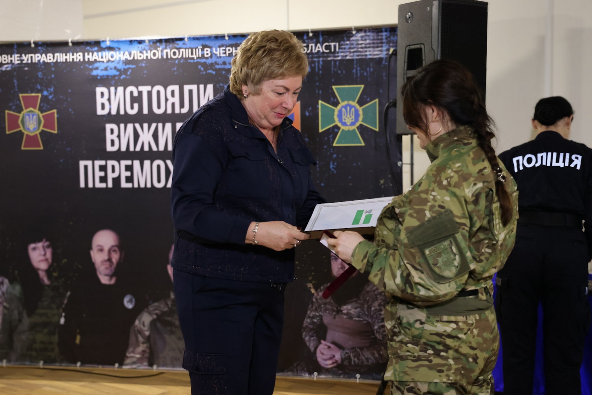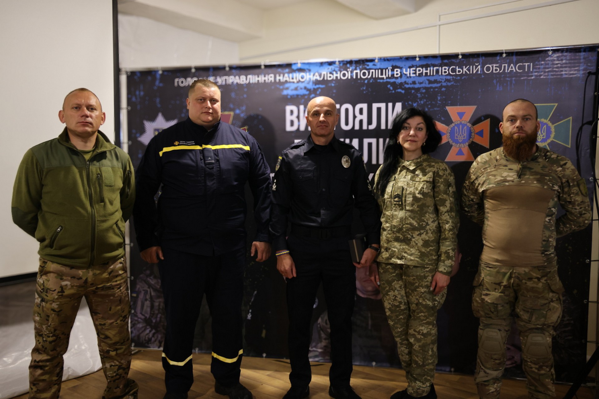 Поліція Чернігівщини презентувала документальний фільм «Вистояли. Вижили. Переможемо» про захисників-чернігівців, ветеранів системи МВС. Серед присутніх на заході – начальник ОВА В’ячеслав Чаус, голова обласної ради Олена Дмитренко, очільник поліції Чернігівщини Іван Іщенко та керівник МВА Дмитро Брижинський.