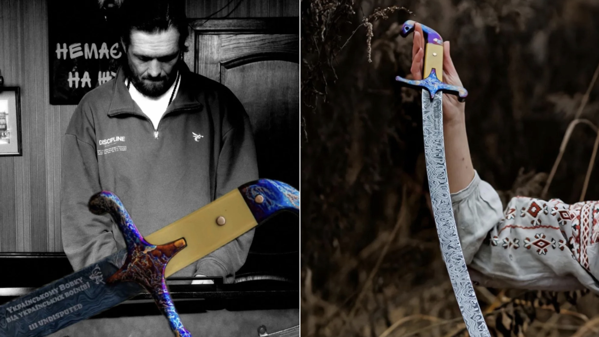 У супроводі до повідомлення прес-служба Олександра Усика додала: шабля має 180 шарів (один з матеріалів, використаних в ній - це уламок ракети X-101, яку збили на Чернігівщині сили ППО, для виготовлення руківʼя було використано матеріал з рами російського дрону, який теж збили захисники на чернігівському напрямку).