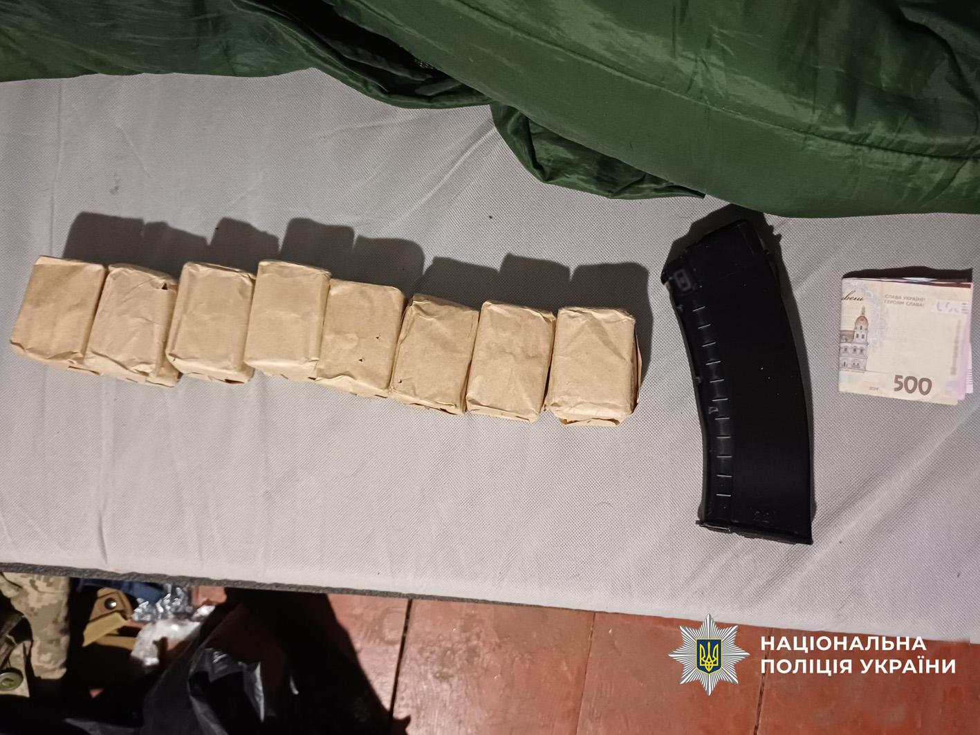 Під час санкціонованого обшуку в помешканні чоловіка правоохоронці вилучили понад 260 набоїв калібру 5,45 мм, грошові кошти та низку інших речових доказів.